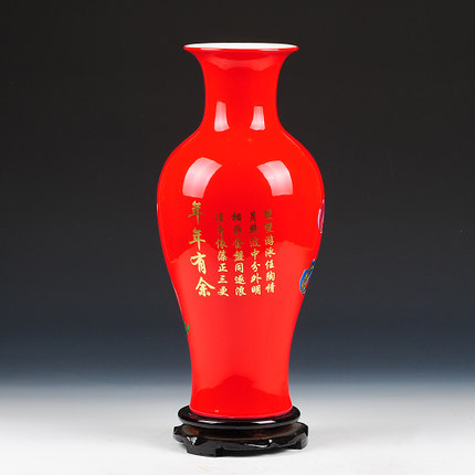 Lotus patten fishtail shape red ceramic vase and ornament
