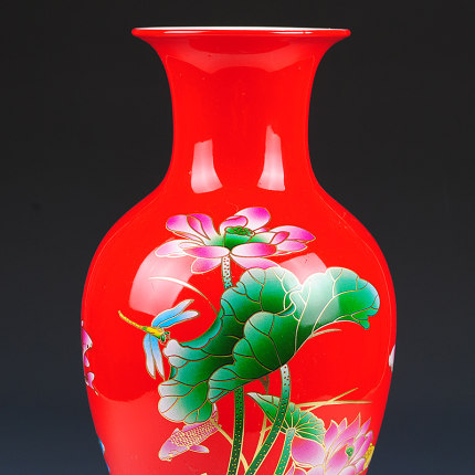 Jahrriesnge red lotus vase cna1010 Porcelain