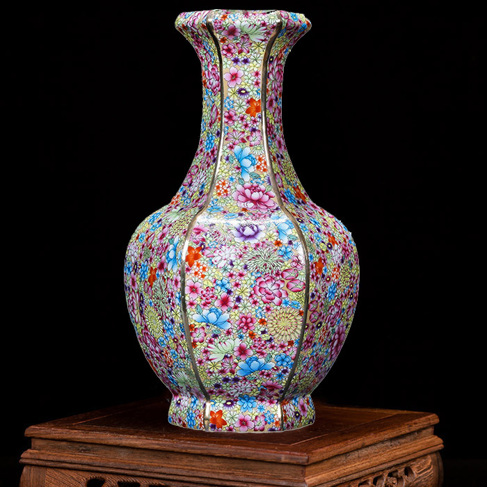 Vintage Qing dynasty multi-flowers hexagonal corners ceramic vase