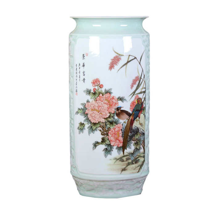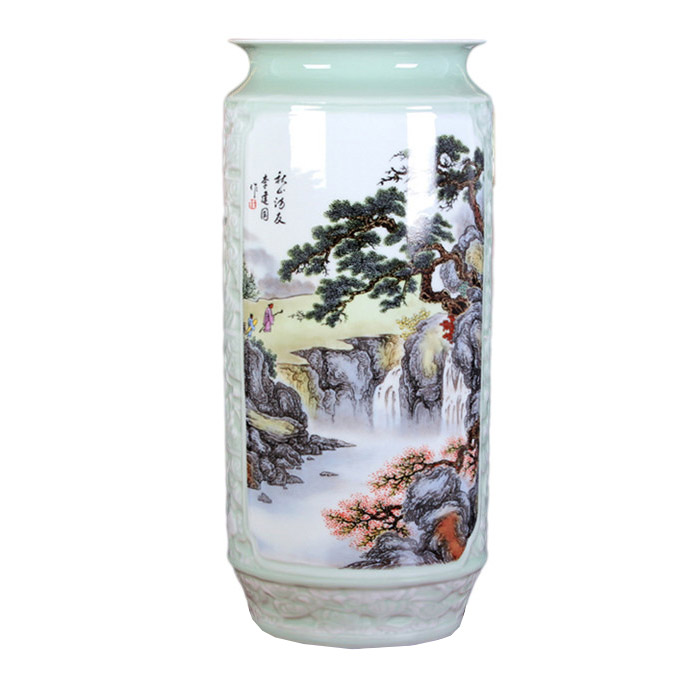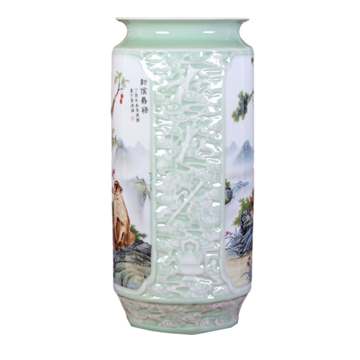 • relief painting calligraphy cylinder vase cna1133 porcelain verify