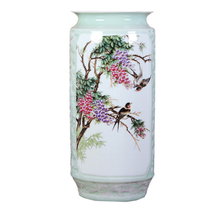Jahrriesnge porcelain of relief painting calligraphy cylinder vase cna1133