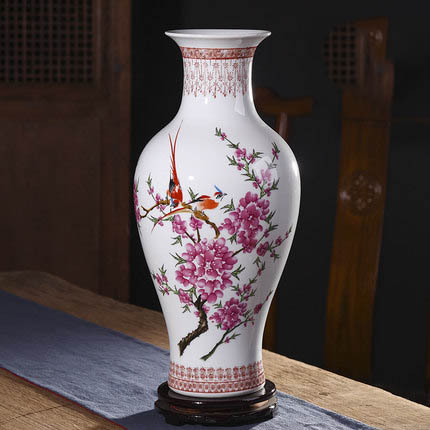 Large birds and peach blossoms floor ceramic vases and ornaments