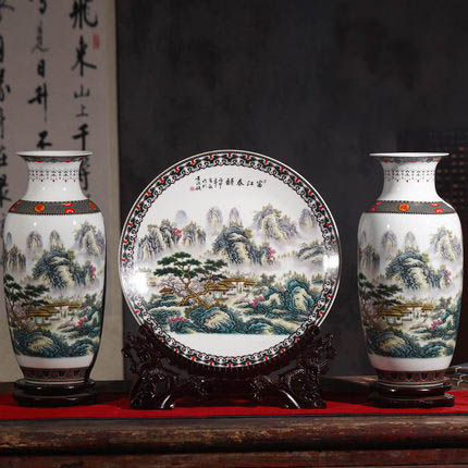 Big spring scenery ceramic vase three-piece set made in china