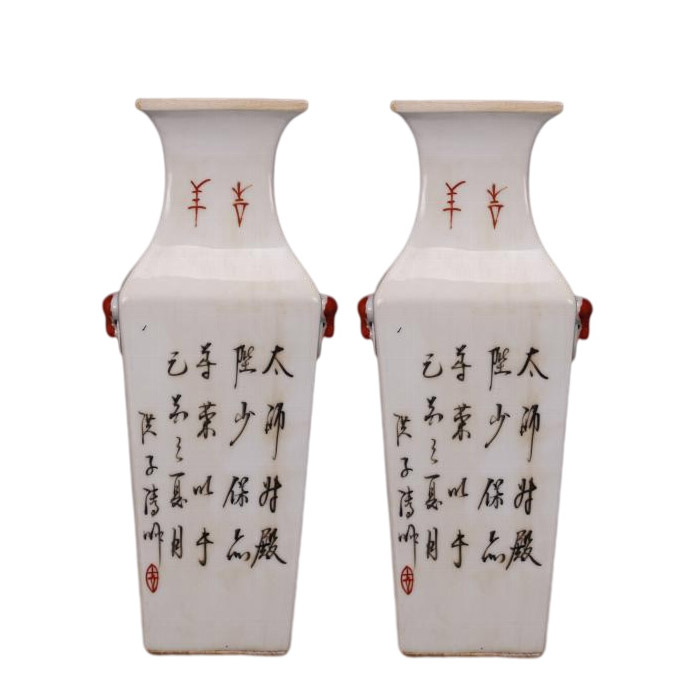 Chinese tongzhi reign qing dynasty red hand-drawn embryo square vases