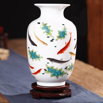 Fish Swimming Winter Melon Shaped Ceramic Small Vase Home Decoration