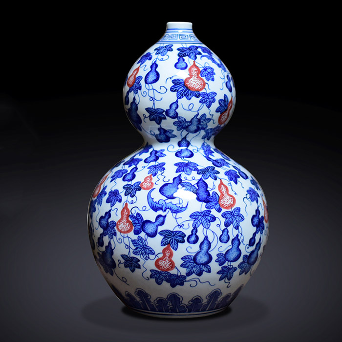 Vintage blue and white porcelain glaze red gourd vase ornaments home