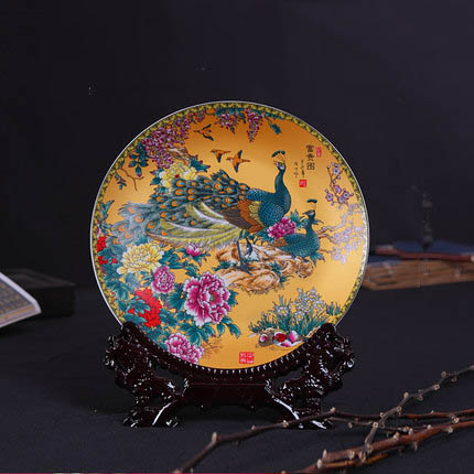 Jingdezhen golden peacock figure ceramic hanging plate