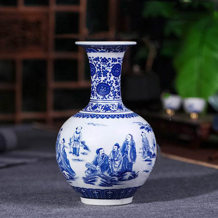Jingdezhen Blue and White Figures Image Ornamental Ceramic Vase