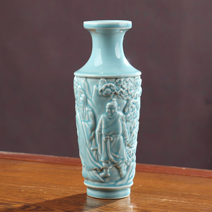 Jingdezhen vintage qing dynasty qianlong green relief ceramic vase