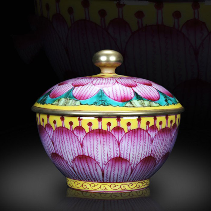Vintage red enamel banana pattern ceramic ware jar with lid