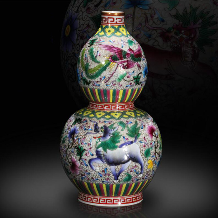Enamel pastel gourd ceramic vase with phoenix hair and kirin horn