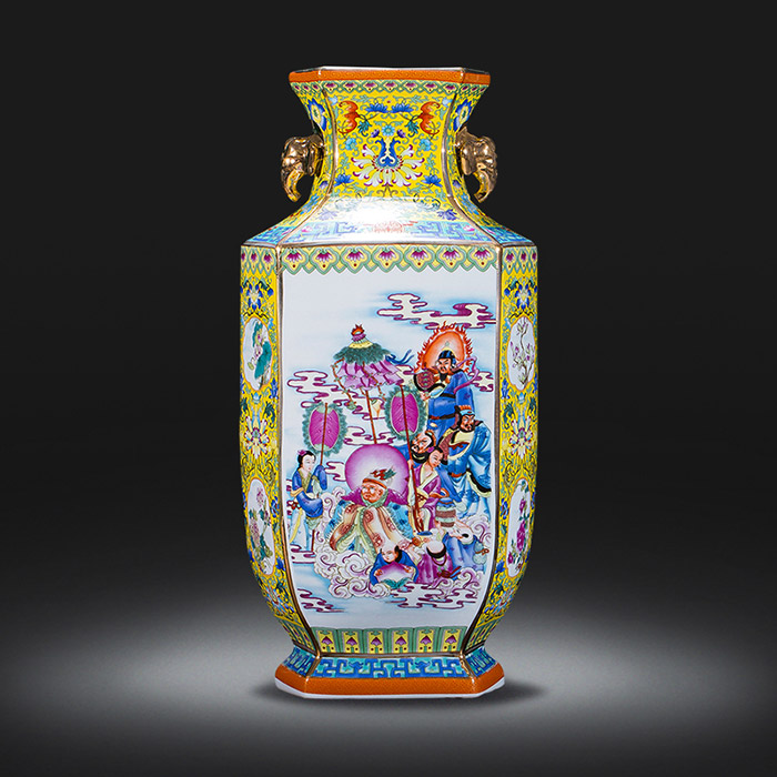 Vintage qing dynasty qian long pastel porcelain hexagonal vase