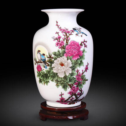 Winter melon shaped moon and birds and peonies pattern ceramic vase