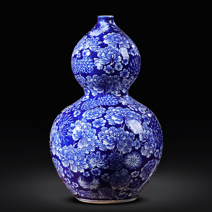 Gourd shape bright blue and white ceramic antique vase for flowers