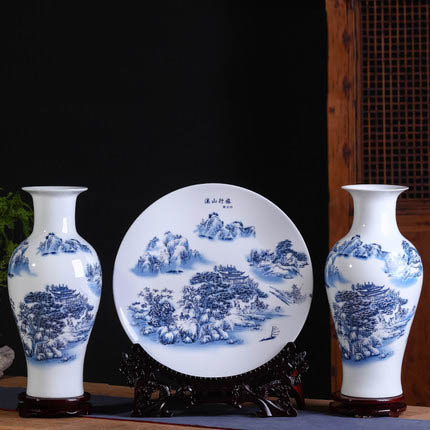 Big mountains and rivers scenery ceramic vases and ornaments 3pcs set