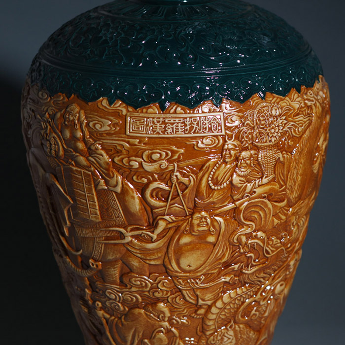 Chinese bas relief eighteen arhat porcelain mermaid vase decorations