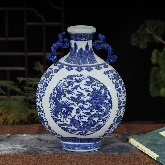 Vintage qing dynasty qianlong official kiln ceramic double sided vase
