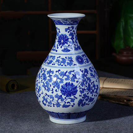 Ceramic Blue and White Porcelain tangled lotus pot shape Vase