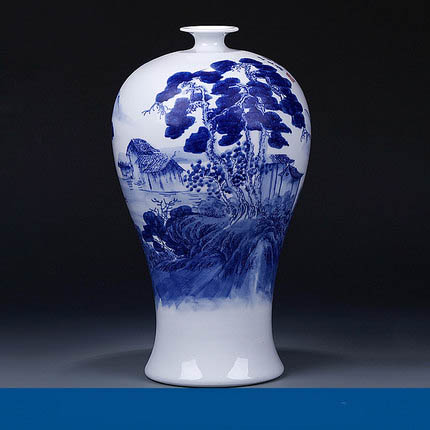Master hand-painted countryside scenery blue and white porcelain vase
