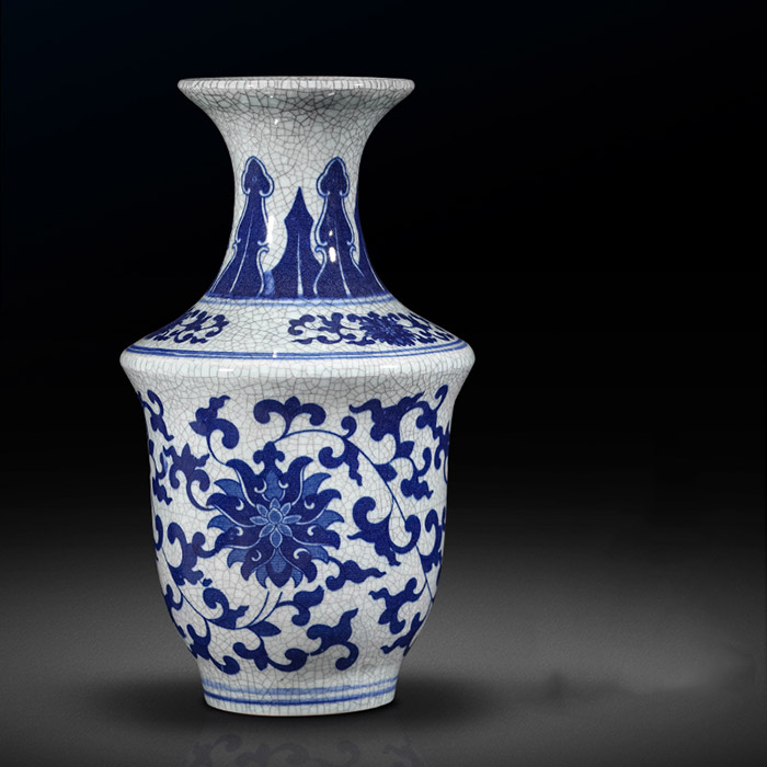 Small barrel shape blue and white chinese cracked glaze ceramic vase
