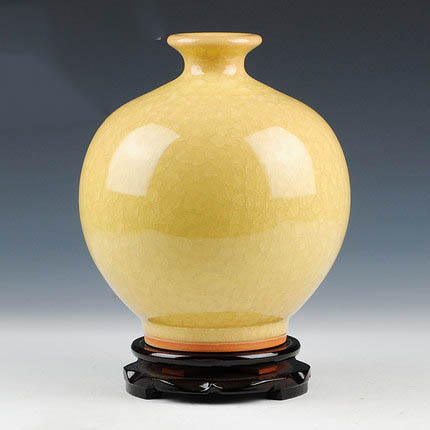 Jahrriesnge yellow ice cube cracked gourd vase cna0735 Porcelain